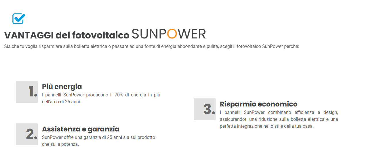 Da anni Partner Certificati Sunpower, vi garantiamo i pannelli fotovoltaici più efficienti sul mercato.